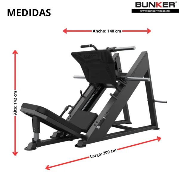 Mayor seguridad y estabilidad: El diseño inclinado a 45 grados y los seguros proporcionan un entrenamiento seguro y eficaz al aislar la carga en las piernas, sin comprometer la postura o la seguridad de la columna.